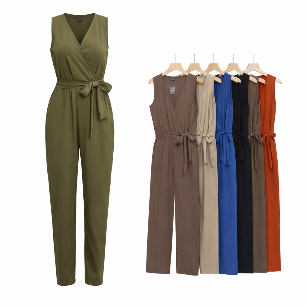 Luce elegante y cómoda con este jumpsuit sin mangas con cinturón ajustable, perfecto para cualquier ocasión: salidas casuales, reuniones o uso diario. Su diseño moderno estiliza la figura y brinda un ajuste cómodo.