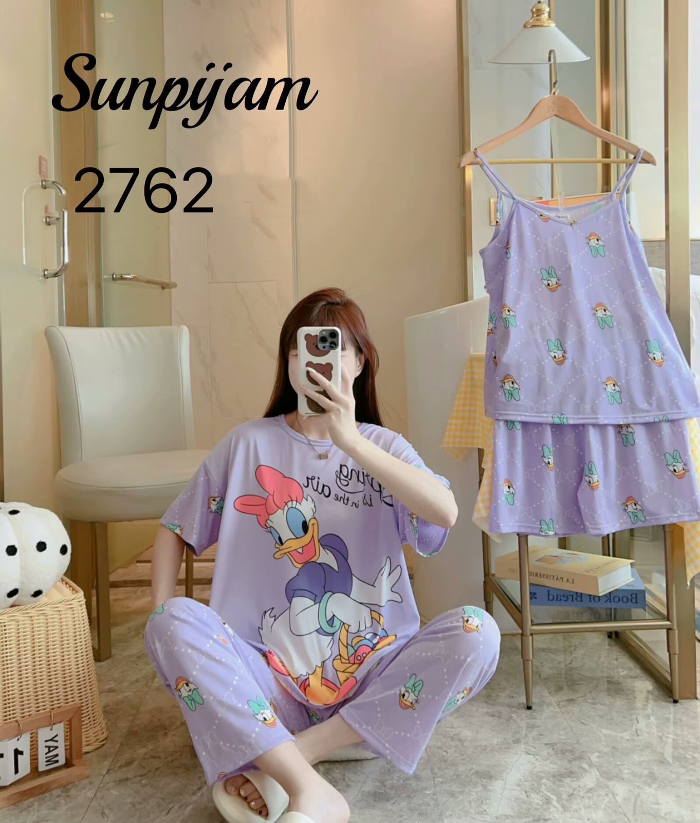 Disfruta de estas pijamas para dama con divertidos diseños de personajes, ideales para descansar con comodidad y estilo. Cada conjunto incluye playera manga corta y pantalón largo, con estampados coloridos y tela suave.